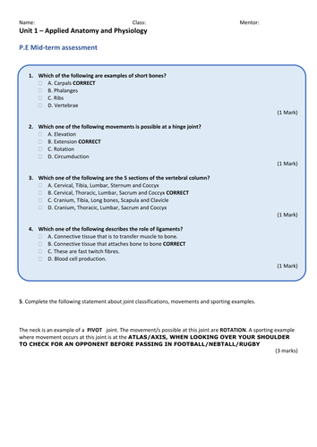 Ez Test Answer Key Anatomy And Physology Practice Anatomy Test